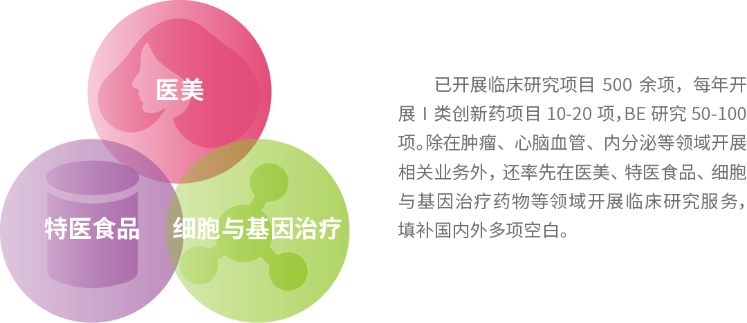 已為500余家國(guó)內(nèi)外知名企業(yè)提供多元化的研發(fā)支持臨床技術(shù)服務(wù),包括化藥、中藥、生物藥的創(chuàng)新藥/仿制藥臨床試驗(yàn)、仿制藥生物等效性(BE)試驗(yàn)及藥代動(dòng)力學(xué)(PK/PD)臨床研究、體內(nèi)外相關(guān)性研究(IVIVR)、醫(yī)學(xué)方案設(shè)計(jì)及指導(dǎo)、第三方稽查服務(wù)及項(xiàng)目投融資等,全面覆蓋大小分子藥物、滿足不同研發(fā)型企業(yè)的臨床研究定制需求,為國(guó)內(nèi)外客戶打通新藥上市前關(guān)鍵瓶頸。