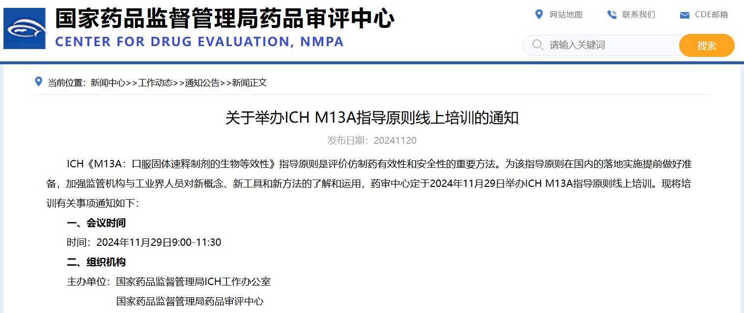 關(guān)于舉辦ICH M13A指導(dǎo)原則線上培訓(xùn)的通知