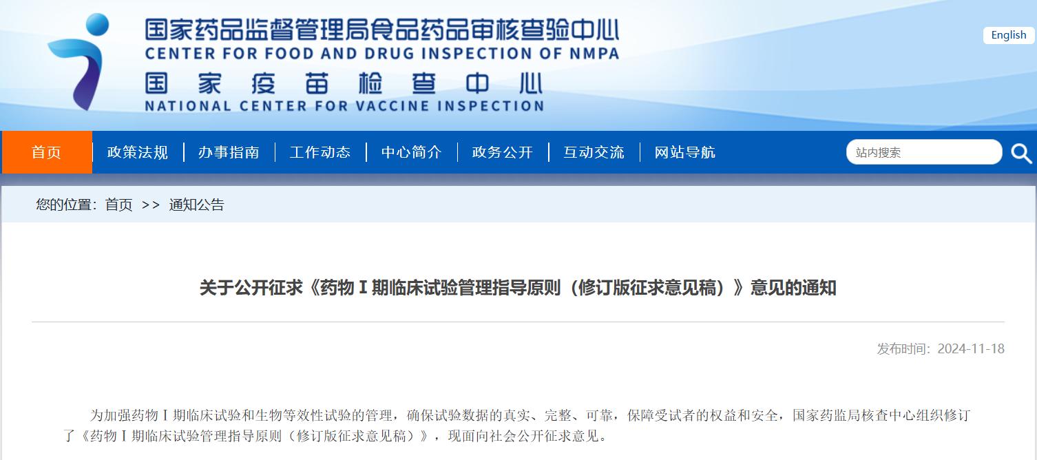 關(guān)于公開(kāi)征求《藥物Ⅰ期臨床試驗(yàn)管理指導(dǎo)原則(修訂版征求意見(jiàn)稿)》意見(jiàn)的通知
