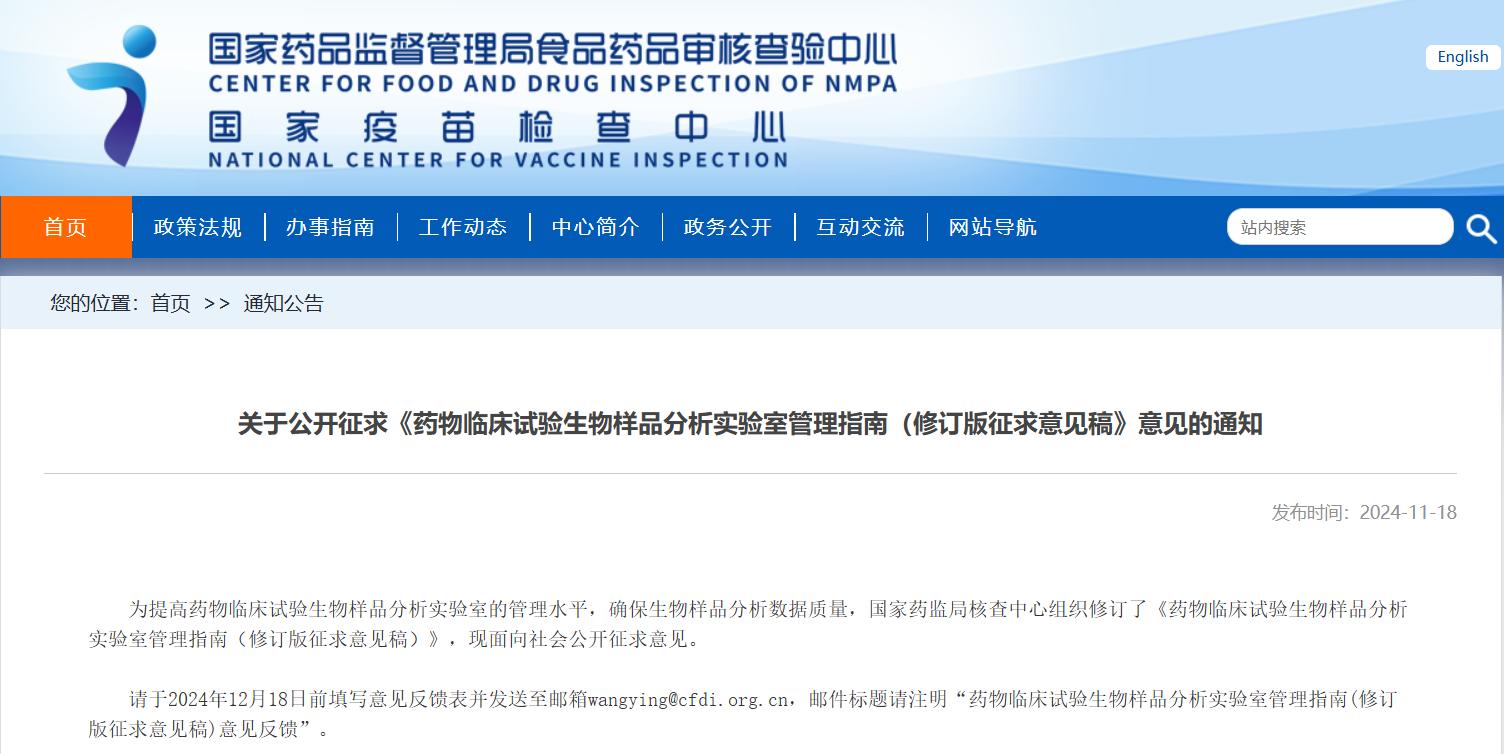 關(guān)于公開(kāi)征求《藥物臨床試驗(yàn)生物樣品分析實(shí)驗(yàn)室管理指南(修訂版征求意見(jiàn)稿)》意見(jiàn)的通知