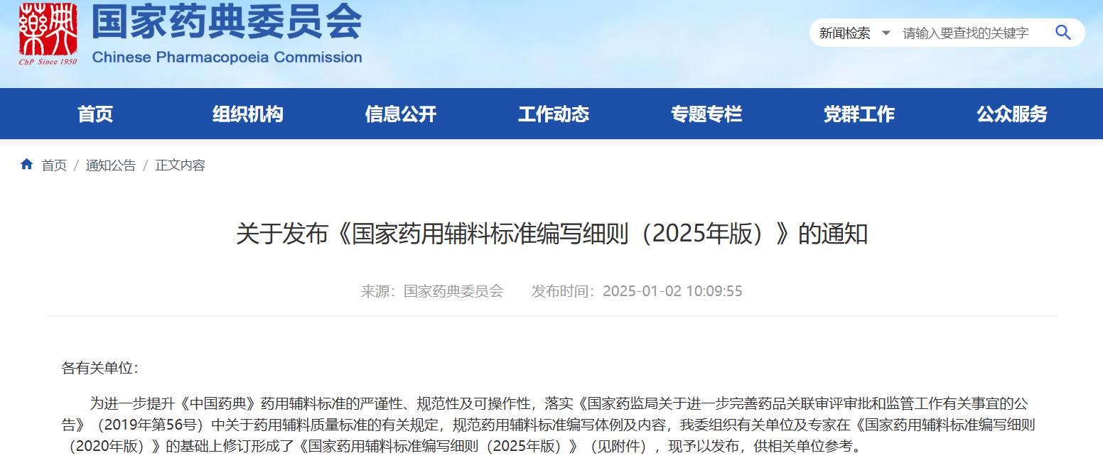 關(guān)于發(fā)布《國家藥用輔料標(biāo)準(zhǔn)編寫細(xì)則(2025年版)》的通知