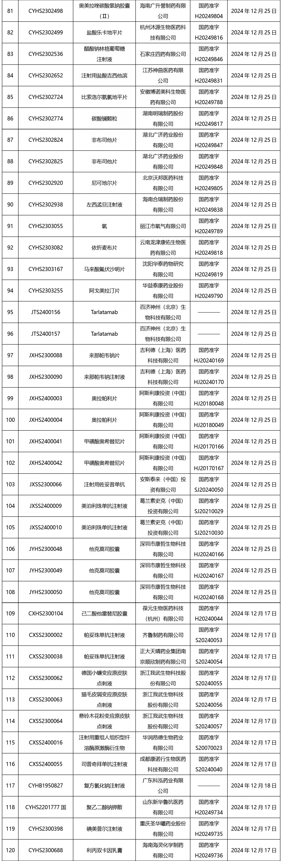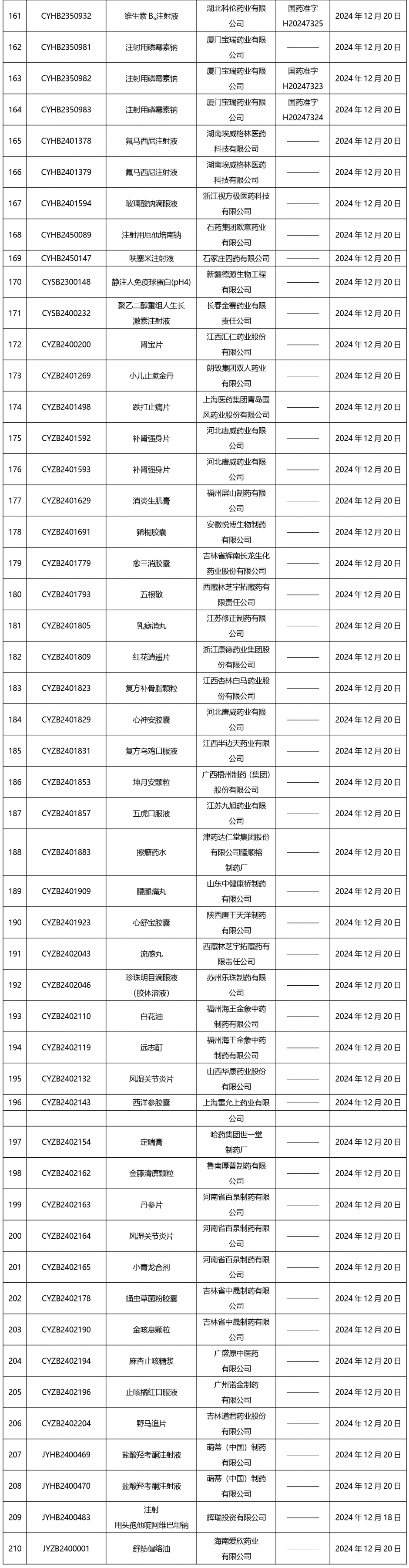 截止2025年1月3日17:00本周發(fā)布210個(gè)待領(lǐng)取藥品批準(zhǔn)證明文件,其中注射劑67個(gè),一致性評(píng)價(jià)品種9個(gè)。