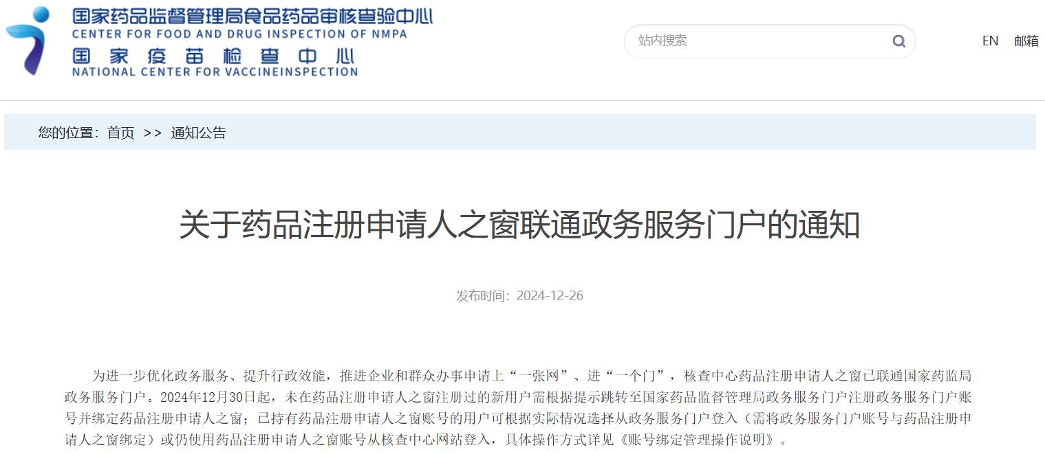 關(guān)于藥品注冊(cè)申請(qǐng)人之窗聯(lián)通政務(wù)服務(wù)門戶的通知
