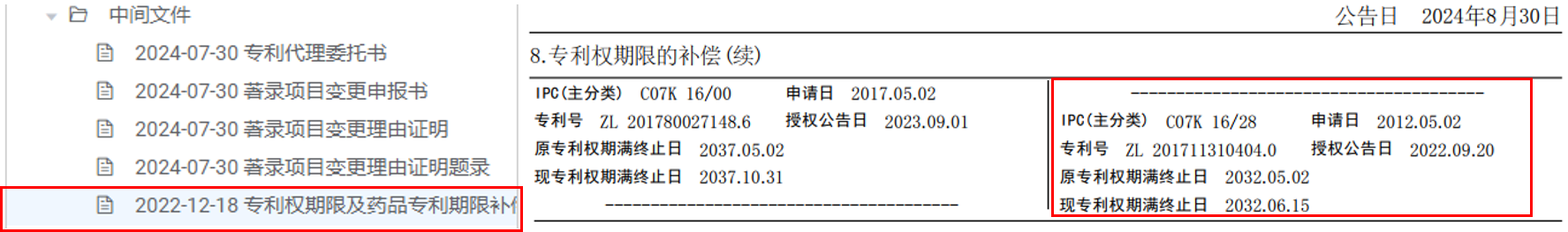 下面通過案例來更深入了解專利權(quán)期限補償,以下為國知局2024.12.27發(fā)布的獲得PTE案例。
