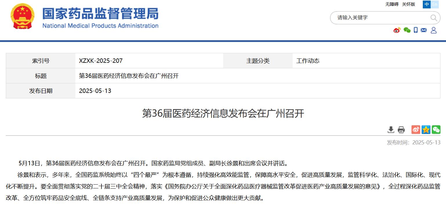 第36屆醫(yī)藥經(jīng)濟信息發(fā)布會在廣州召開國家藥監(jiān)局召開化妝品備案管理智能化轉(zhuǎn)型工作視頻會