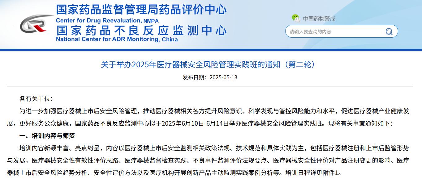 關(guān)于舉辦2025年醫(yī)療器械安全風(fēng)險管理實踐班的通知(第二輪)
