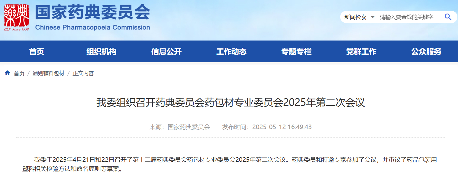 藥典委組織召開藥典委員會藥包材專業(yè)委員會2025年第二次會議
