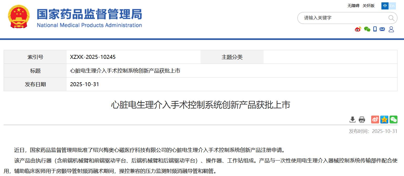 心臟電生理介入手術(shù)控制系統(tǒng)創(chuàng)新產(chǎn)品獲批上市