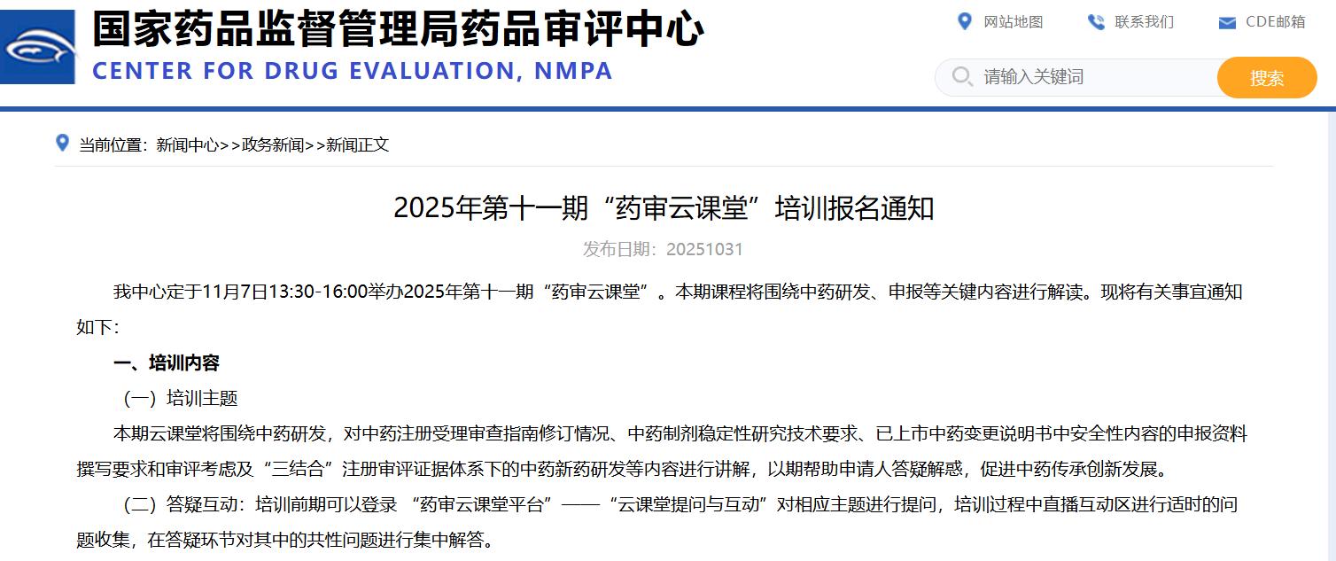 2025年第十一期“藥審云課堂”培訓(xùn)報(bào)名通知