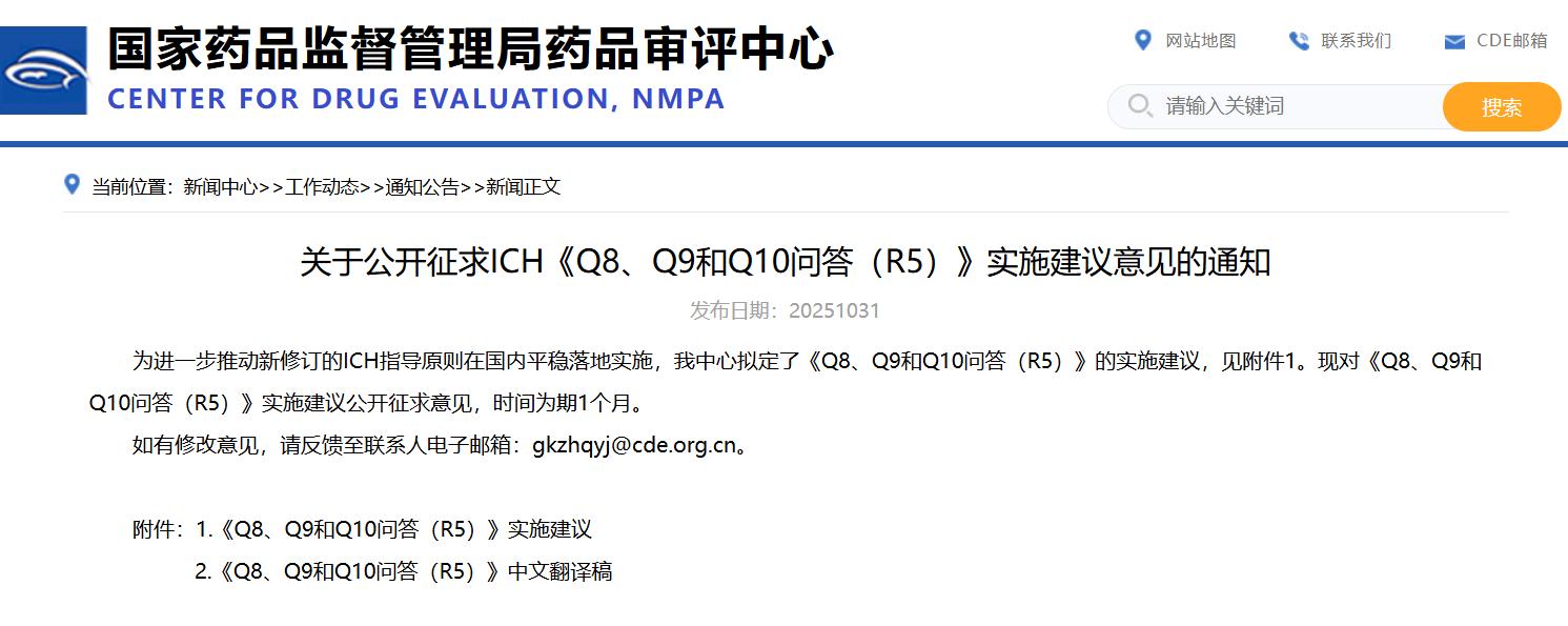 關(guān)于公開征求ICH《Q8、Q9和Q10問答(R5)》實(shí)施建議意見的通知