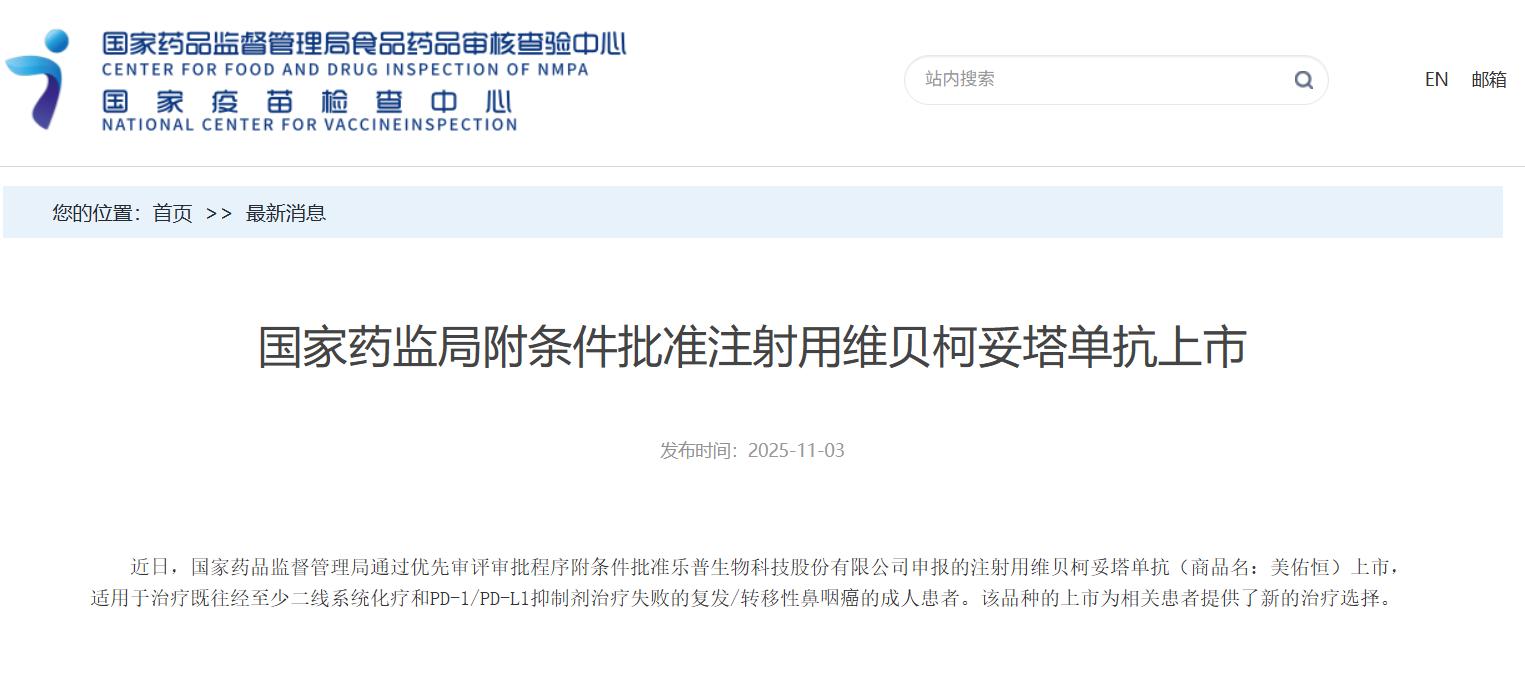 國家藥監(jiān)局附條件批準(zhǔn)注射用維貝柯妥塔單抗上市