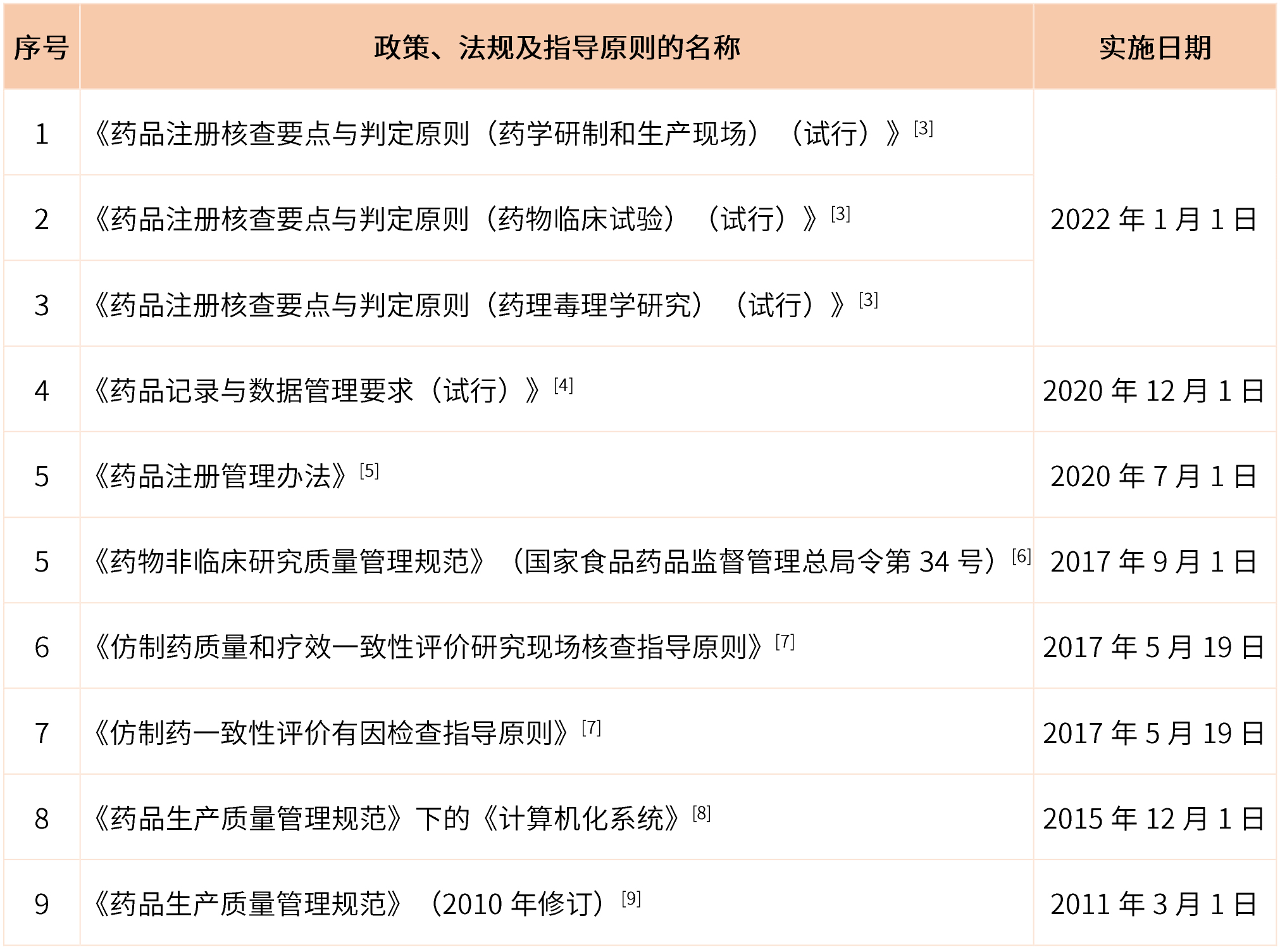 目前國(guó)內(nèi)主要有以下支持研發(fā) QA 的政策法規(guī),及 ICH 指導(dǎo)原則 Q8~Q11[2]。