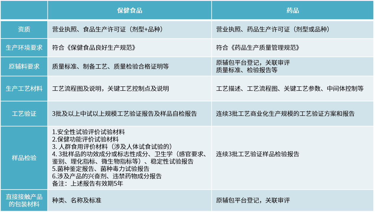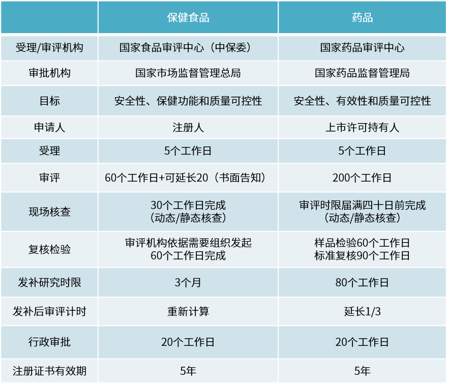 境內(nèi)生產(chǎn)保健食品注冊(cè)與藥品注冊(cè)流程對(duì)比表
