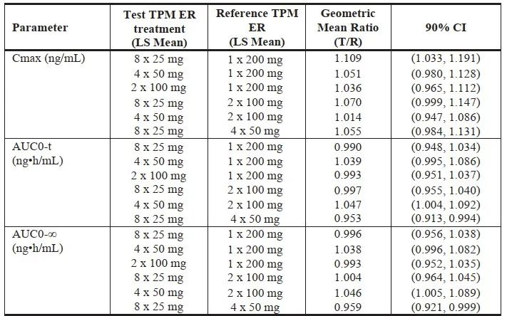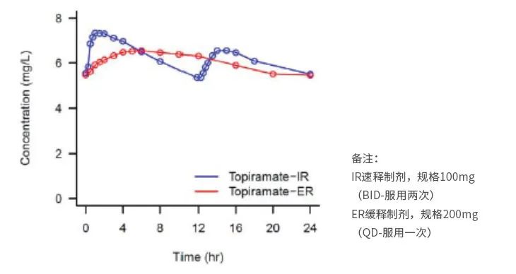 ·托吡酯緩釋膠囊將每個(gè)時(shí)間段的藥動(dòng)學(xué)參數(shù)與片劑進(jìn)行比較,證明兩種制劑的差異較小。實(shí)現(xiàn)豁免驗(yàn)證性臨床。