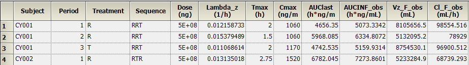 獲得預(yù)BE試驗原始數(shù)據(jù)(給藥后不同采血點的血藥濃度)后, WinNonlin軟件可首先協(xié)助我們進行生物等效性結(jié)果的計算: