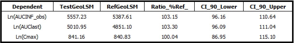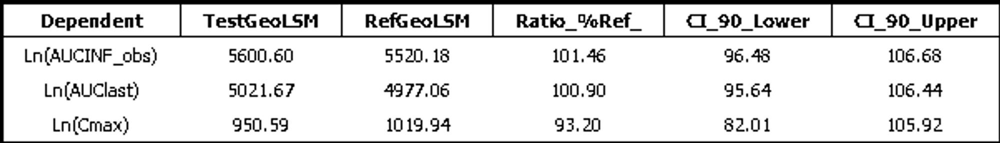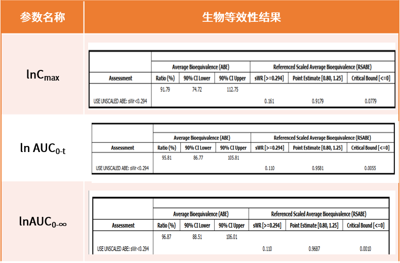 按照以上方案我司進行了正式BE試驗,順利地通過本品的一致性評價,最終BE等效性數(shù)據(jù)如下:
