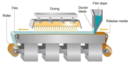 溶劑澆鑄法:溶劑澆鑄法是最常被運(yùn)用的制備技術(shù),其工藝過程簡(jiǎn)單概況而言就是將成膜材料、原料藥和其他輔料溶解或懸浮在適宜的溶劑中,如水、乙醇、丙酮等;混合均勻后去除氣泡,然后澆鑄到模具上或涂布成膜劑,干燥后進(jìn)行切割和包裝。