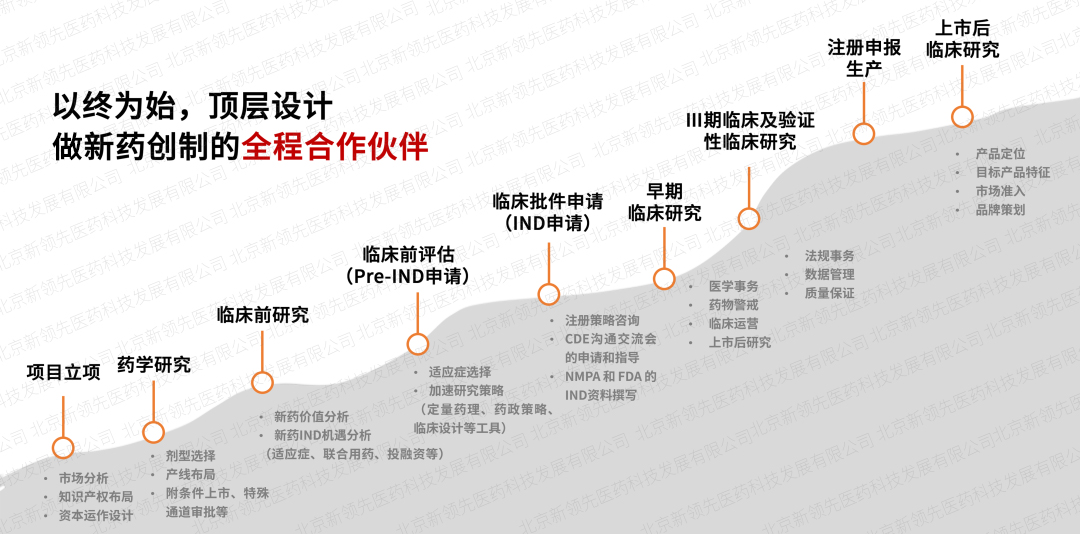 依托于新領先CXO服務體系,創(chuàng)建了“交互式”臨床服務模式,在項目立項階段全面介入,做新藥創(chuàng)制的全程合作伙伴,整合醫(yī)學、藥政、藥學研發(fā)等技術專家進行頂層設計,最大限度降低項目研發(fā)風險。同時,成立專項政府引導基金,為創(chuàng)新項目提供不同階段的投融資,最大程度加速藥品上市進程。此外,強大的定量藥理學及體內外橋接團隊針對特定疾病和特定人群進行數(shù)字模型研究,制定科學高質的臨床研究方案,提高新藥臨床開發(fā)效率。