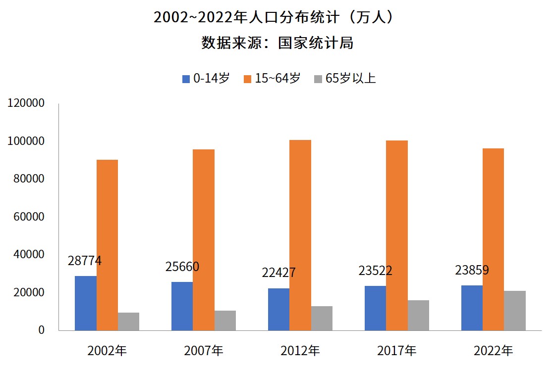 我國兒童的概念通常是指0~14歲的人群。我國兒童人口基數(shù)龐大,國家統(tǒng)計局數(shù)據(jù)顯示,2022年我國0~14周歲人口為2.39億人,占總?cè)丝诒壤?7%。隨著國家全面開放二胎和三胎政策,兒童醫(yī)療需求亦不斷高漲,診療人次以每年400萬~500萬人次遞增。