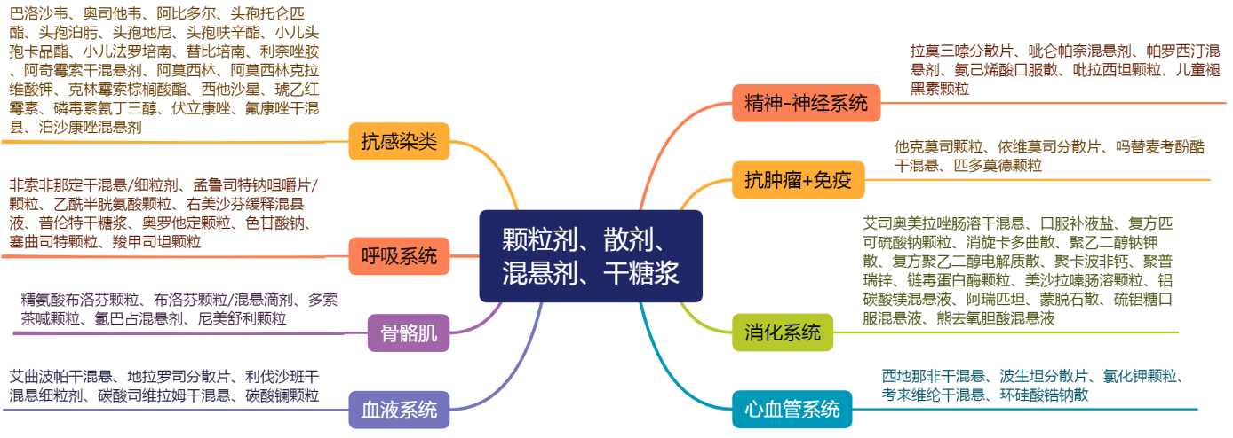 針對(duì)兒童優(yōu)勢(shì)劑型,新領(lǐng)先醫(yī)藥在口服溶液劑、顆粒劑、散劑、混懸劑、干糖漿、口溶膜、口崩片、分散片等劑型方面均有布局,涉及精神-神經(jīng)系統(tǒng)、抗腫瘤-免疫、消化系統(tǒng)、心血管系統(tǒng)、血液系統(tǒng)等多個(gè)領(lǐng)域,助力國(guó)內(nèi)兒童企業(yè)產(chǎn)品開(kāi)發(fā)及選擇,以下為新領(lǐng)先醫(yī)藥部分研發(fā)產(chǎn)品清單。