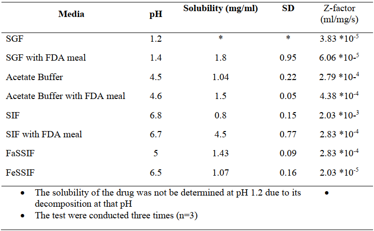 表1 克拉霉素在不同介質(zhì)中的溶解度和轉(zhuǎn)換因子
