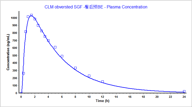 我司擁有國內(nèi)首個體內(nèi)外橋接(IVIVR)研發(fā)平臺,不僅擁有Gastroplus軟件,而且完成了克拉霉素片仿制藥的申報。小編這里運用GastroPlus軟件的PBPK模型對克拉霉素片進(jìn)行模型驗證。將我司獲得的餐后狀態(tài)下的體內(nèi)PK數(shù)據(jù)輸入該模型中,模擬結(jié)果見表6。根據(jù)結(jié)果可知,我司取得的餐后PK數(shù)據(jù)與模型觀測值擬合度極高,誤差小于10%,二者血漿濃度藥時曲線也幾乎完全吻合,標(biāo)明該模型具有良好的預(yù)測性。