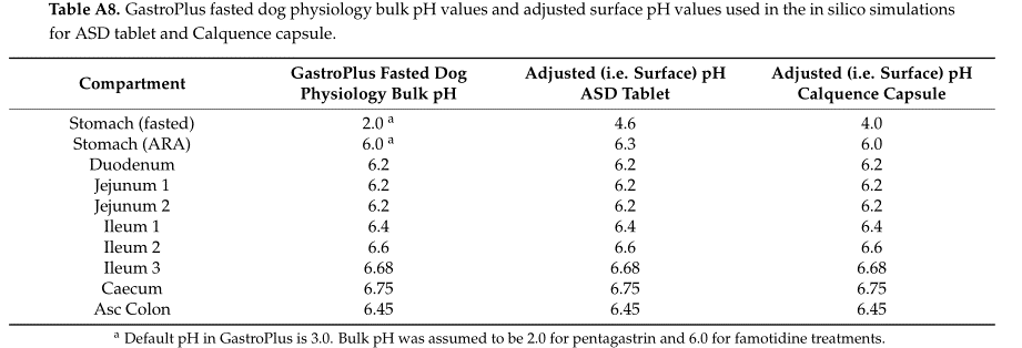 * 比格犬體重為10kg;比格犬服用法莫替?。╢amotidine,ARAs)胃部pH設(shè)定為pH6.0,服用五肽胃泌素(pentagastrin)胃部pH設(shè)定為pH2.0