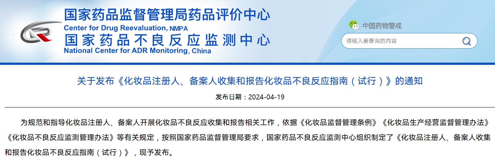 關(guān)于發(fā)布《化妝品注冊人、備案人收集和報告化妝品不良反應(yīng)指南(試行)》的通知