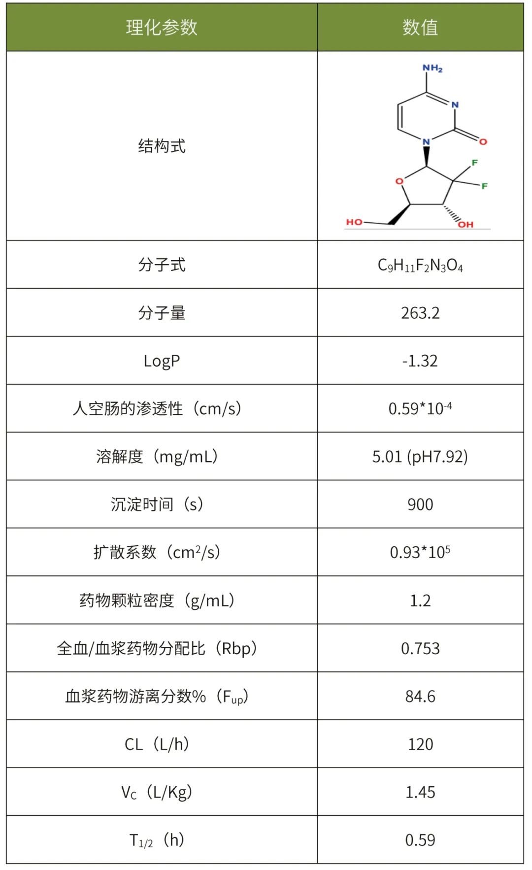 所有模型的劑量體積均設(shè)置為250mL。所有的模擬均使用一房室分布模型、空腹?fàn)顟B(tài)的ACAT模型,采用GastroPlus軟件預(yù)測吉西他濱的主要ADME參數(shù)見表1。