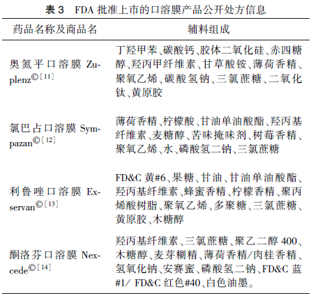 通過以上已上市產(chǎn)品處方的梳理,可了解口溶膜產(chǎn)品處方的常規(guī)組成,對研發(fā)和評價具有一定參考價值。