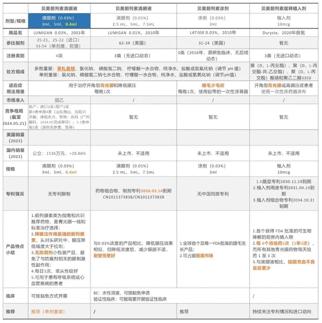 建議開發(fā)單劑量裝0.03%滴眼液、改善安全性的0.01%滴眼液、醫(yī)美涂劑,持續(xù)關(guān)注植入劑進(jìn)口動向和專利情況。
