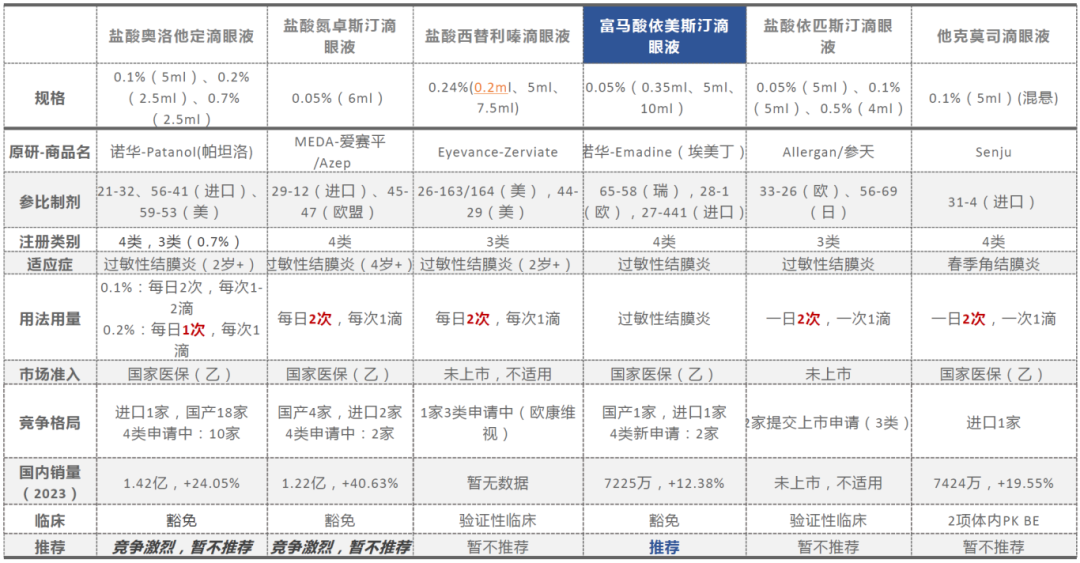 圖7:富馬酸依美斯汀滴眼液相關產(chǎn)品信息