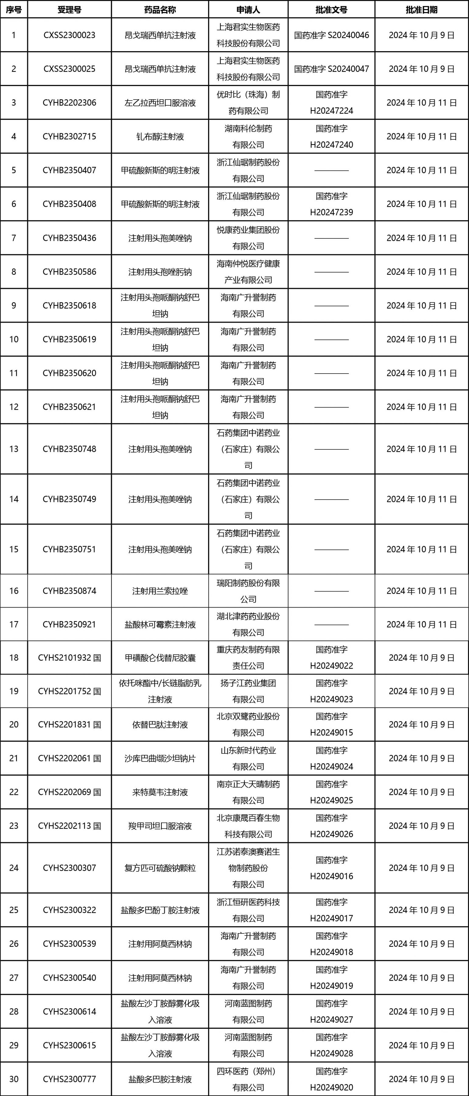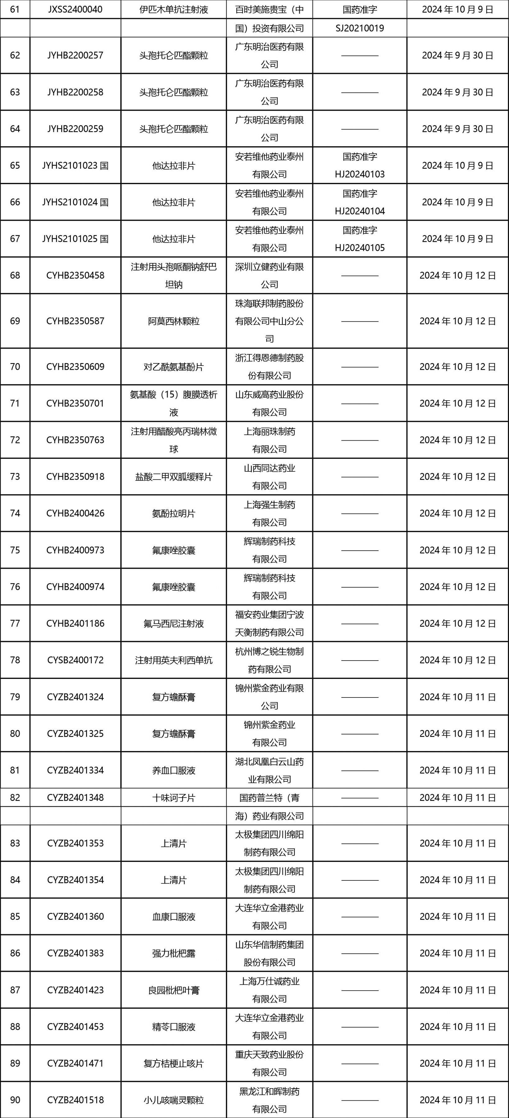 截止2024年10月18日 15:00本周發(fā)布161個待領取藥品批準證明文件,其中注射液84個,一致性評價品種30個。