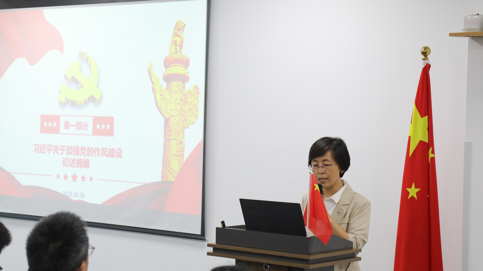 Ju Ping, Deputy Secretary of the General Party Branch of Leadingpharml and General Manager of the Preparation Center, led the study, focusing on the "expositions on the spirit of the Eight-Point Regulation" in Selected Readings on Xi Jinping's Expositions on Strengthening the Party's Work Style Construction.