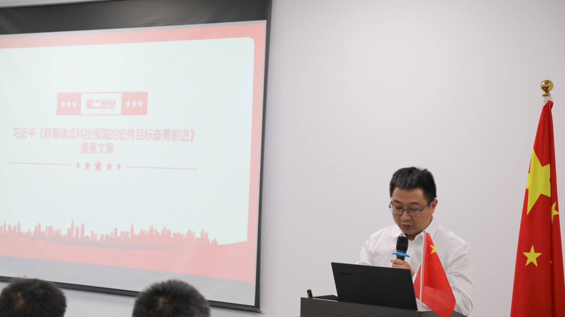 Liu Yang, Operation Manager of the Clinical Medicine Center of CNBG, led the study of the relevant content of Xi Jinping's article "March Forward Vigorously Toward the Grand Goal of Building a World Science and Technology Power" published in Qiushi Magazine.