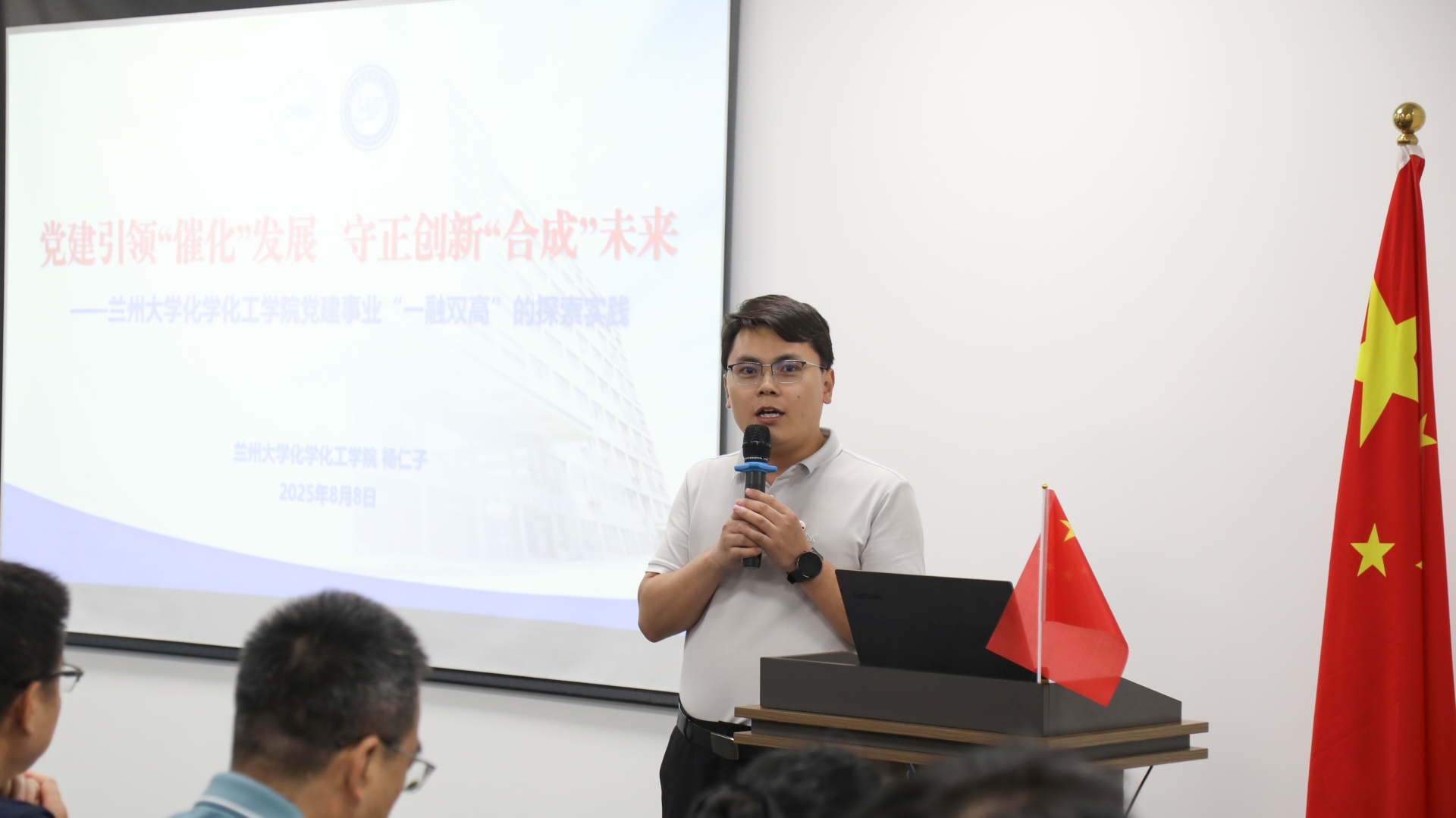 Yang Renzi, Deputy Secretary of the Party Committee of the School of Chemistry and Chemical Engineering of Lanzhou University, shared a report titled Party Building Leads and "Catalyzes" Development, Upholding Integrity and Innovating to "Synthesize" the Future. Using professional concepts in chemistry such as "catalysis" and "synthesis" as metaphors, he discussed the key issues of how to transform the political advantages of Party organizations into impetus for talent cultivation and discipline development in Party building work.