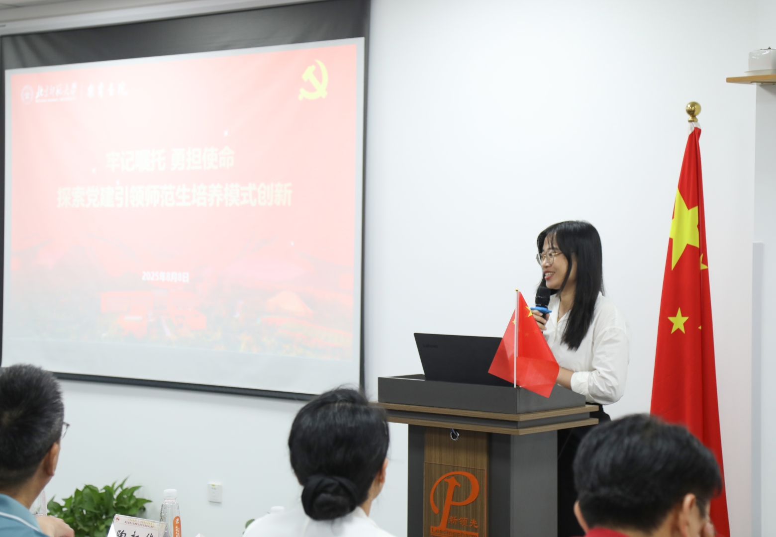 Cao Meixin, Secretary of the Joint Party Branch of Teachers and Students of Mingde Dormitory of Leyu Academy of BNU, explained the report Exploration of Innovative Paths for Normal University Students Cultivation Under the Guidance of Party Building. Leyu Academy adheres to cultivating talents for the country, implements the "spirit of the reply" from General Secretary Xi Jinping, focuses on "all-round education in all aspects and for all students" in Party building, and leads the new trend of serving the country through normal education.