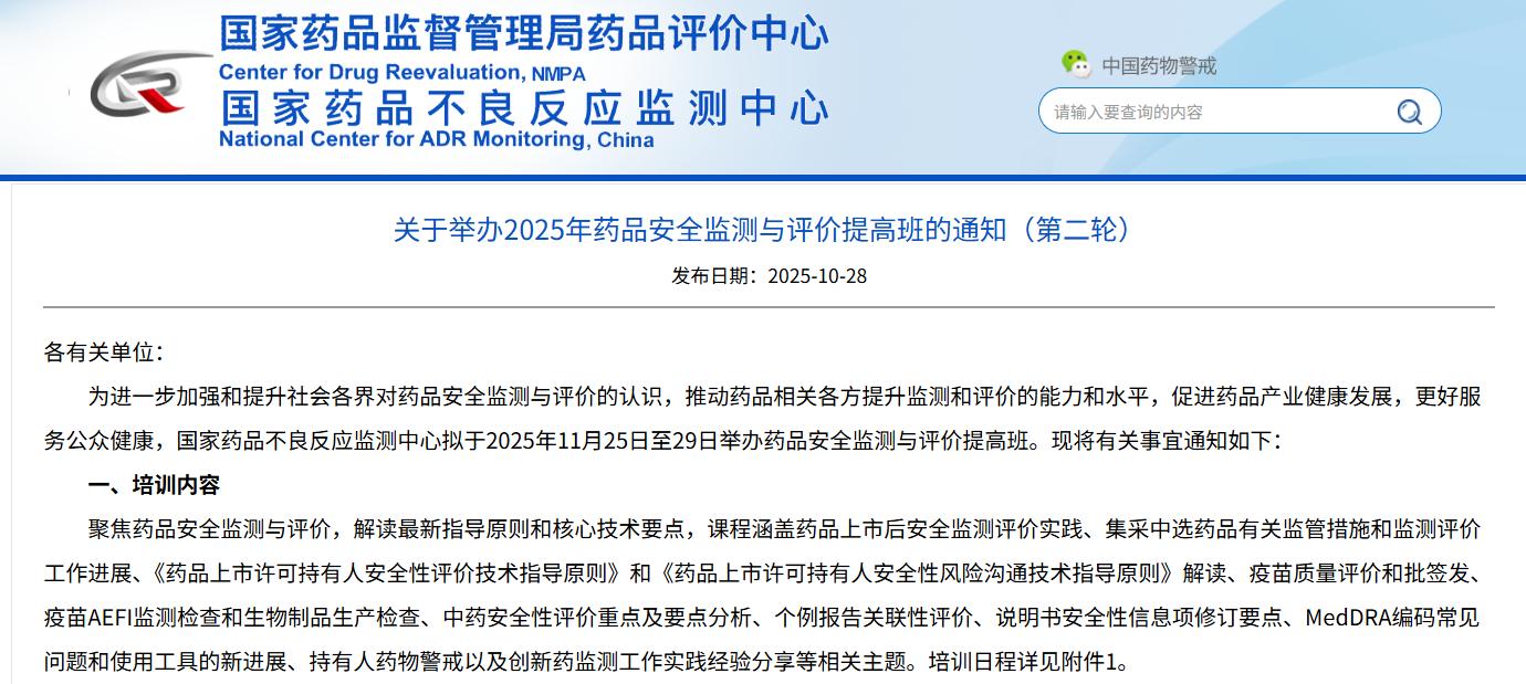 關(guān)于舉辦2025年藥品安全監(jiān)測與評價(jià)提高班的通知(第二輪)